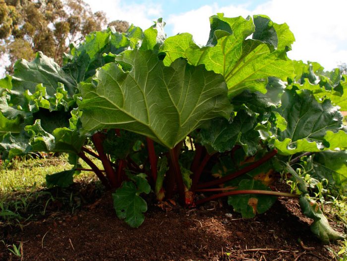 aby ogonki były duże, krzewy należy podlewać systematycznie i obficie. W ciągu jednego sezonu taka kultura jest podlewana 3 lub 4 razy, a na 1 metr kwadratowy działki zużywa się od 3 do 4 wiader wody. Im rzadsze i rzadsze podlewanie, tym większa ilość kwasu szczawiowego będzie zawarta w ogonkach.