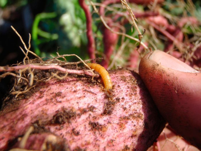 słodki ziemniak jest dość odporny na różne szkodliwe owady i choroby, które są znane na średnich szerokościach geograficznych. Jednak larwy chrustu mogą go skrzywdzić, zauważając, że z reguły uszkadzają największe i najpiękniejsze bulwy. Konieczne jest zwalczanie chruścików i ich larw, podczas gdy można ich używać na różne sposoby.