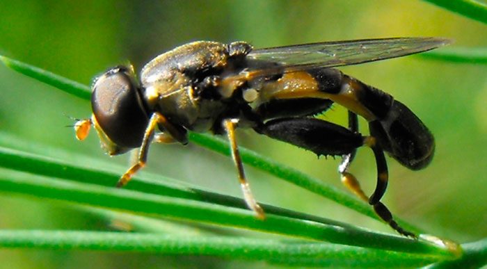 ten mały szkodnik o brązowym kolorze ma żółtą głowę, kończyny i anteny, podczas gdy używa łodyg szparagów do jedzenia, mucha gryzie w nich wiele ruchów. Z czasem obserwuje się krzywiznę łodyg, ich więdnięcie i obumieranie.