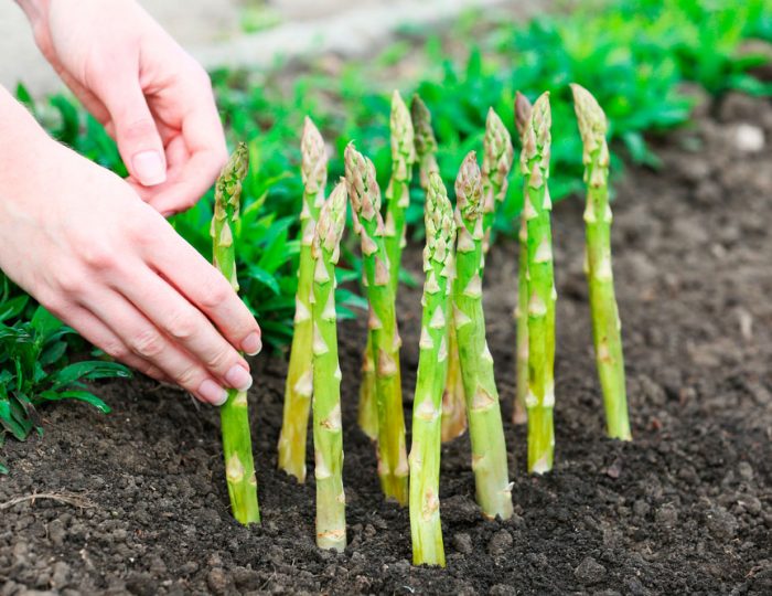 w otwartej glebie sadzonki szparagów sadzi się w pierwszych dniach czerwca. Aby uzyskać dobre zbiory tej uprawy, do sadzenia sadzonek musisz wybrać bezwietrzny słoneczny obszar położony w pobliżu ogrodzenia lub ściany. Ponieważ roślina ta reaguje wyjątkowo negatywnie na stagnację wody w glebie, do jej sadzenia nie należy wybierać obszarów, w których występuje wysokie występowanie wód gruntowych. Musisz ostrożnie wybrać miejsce do sadzenia, ponieważ szparagi można uprawiać w tym samym miejscu od 20 do 25 lat.