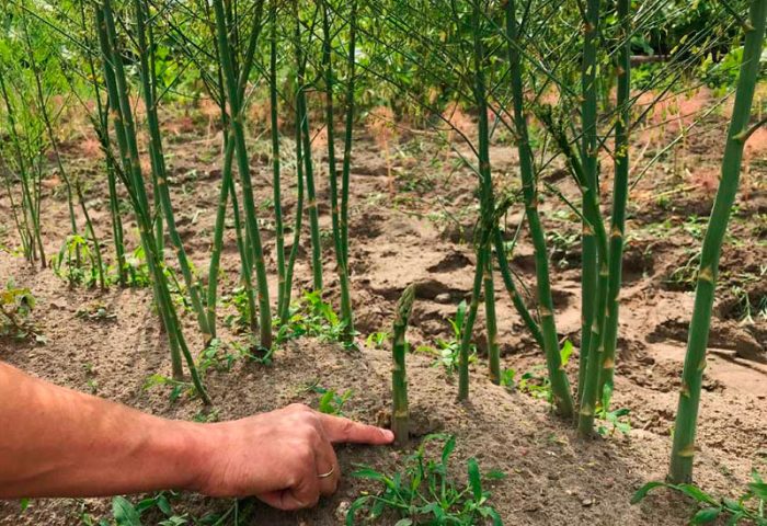 w warunkach pokojowych rosną tylko sadzonki takiej rośliny, a następnie należy ją przesadzić na otwartą glebę. Bardzo trudno jest wyhodować w domu taką jadalną roślinę o silnym i długim korzeniu. W warunkach pokojowych może być uprawiany tylko jako roślina ozdobna, podczas gdy szparagi mogą być uprawiane tylko na otwartej glebie jako roślina warzywna.