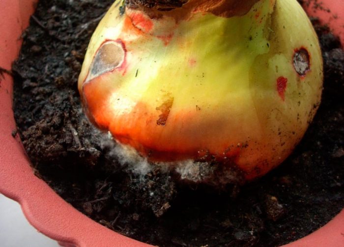 z powodu białej zgnilizny dotknięte części rzodkiewki stają się bezbarwne i wodniste, na ich powierzchni tworzy się grzybnia, która wygląda jak wata.
