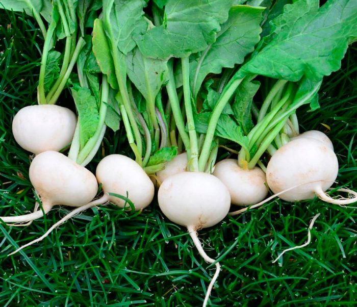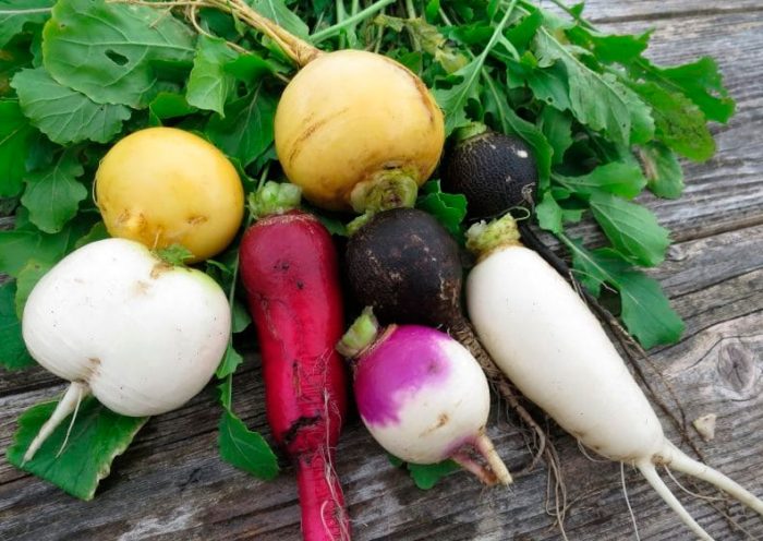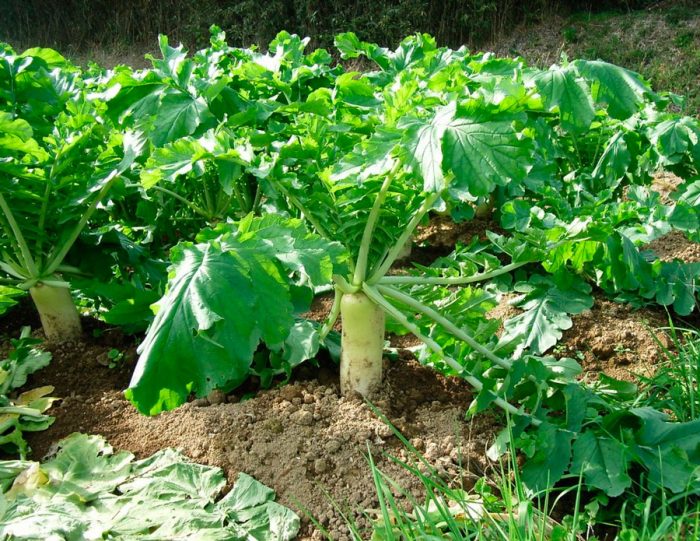 - daikon lub japońska rzodkiewka . Długość dużych białych roślin okopowych osiąga 0,6 m, a ich średnica sięga od 10 do 15 centymetrów. Taka rzodkiewka jest bardzo smaczna i zdrowa, a także jest bezpretensjonalna. 100 gramów takiej rzodkiewki zawiera około 40 procent dziennej wartości witaminy C. Nawet w tej odmianie jest dużo beta-karotenu, potasu, selenu, błonnika, kwasu foliowego, żelaza i jodu. Najbardziej popularne są takie odmiany, jak: Sasha, Smok, Pałka, japońska biała długa.