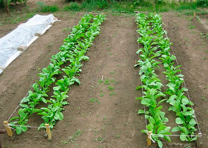 w przygotowanych łóżkach musisz wykonać rowki o głębokości dochodzącej do 20 mm, szerokość między nimi powinna wynosić około 35 centymetrów, podczas gdy 3 nasiona są w nich układane, a odległość między gniazdami powinna wynosić 80 mm, a następnie rowki są wypełnione glebą, która jest dobrze zagęszczona. Jeśli ziemia jest zbyt sucha, po zakończeniu siewu należy ją podlać. Pierwsze sadzonki mogą pojawić się po 7 dniach.