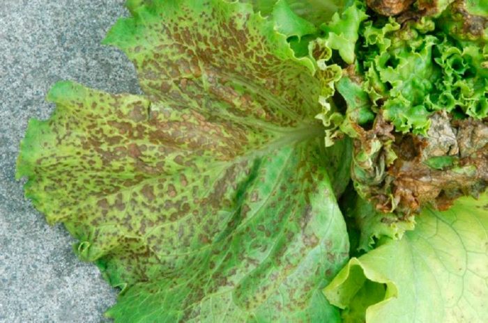 mączniak rzekomy (peronosporoza) przyczynia się do powstawania plam chlorotycznych na przedniej powierzchni liści, w miarę rozwoju choroby żółkną i stają się oleiste, a następnie brązowieją. Później na dolnej powierzchni płytek pod punktami tworzy się powłoka Brudno-fioletowego koloru.