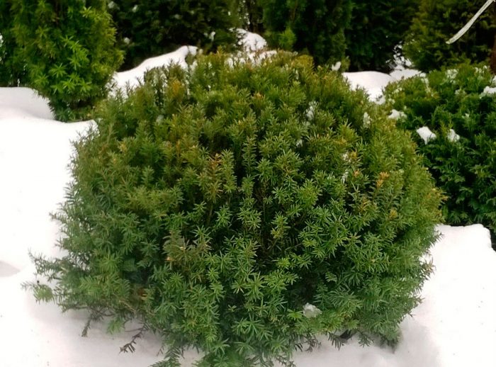jeśli spodziewana jest śnieżna zima, CIS może bardzo ucierpieć z powodu silnego mrozu. Aby temu zapobiec, krzew należy owinąć lutrasilem lub spunbondem, ale najpierw musisz zainstalować ramę, ponieważ konieczne jest, aby między drzewem a materiałem pokrywającym była wolna przestrzeń. Nie zaleca się przykrywania cisu płótnem, ponieważ podczas odwilży staje się mokry, a następnie pokryty lodem. Ponadto w tym celu lepiej nie używać pokrycia dachowego i polietylenu, ponieważ materiał ten nie pozwala na przenikanie powietrza do gałęzi. Konieczne jest usunięcie schronienia wiosną po tym, jak gleba dobrze się rozgrzeje. Ale w tym czasie konieczne jest zabezpieczenie cisu przed bezpośrednim działaniem promieni słonecznych przed powstaniem młodych wzrostów, ponieważ wiosną słońce jest najbardziej aktywne i może z tego powodu bardzo ucierpieć. Wiosną, przy wietrznej i bezchmurnej pogodzie, system korzeni, który nie został w pełni przywrócony, nie jest w stanie normalnie wchłonąć wody, w tym samym czasie obserwuje się aktywne odparowanie wilgoci przez igły, dlatego Cisy łatwo ulegają uszkodzeniu. Z tego powodu roślina wymaga cieniowania od światła słonecznego o tej porze roku.