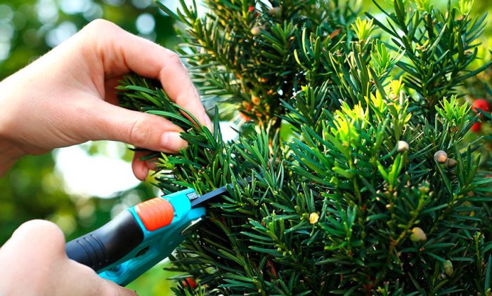 taka roślina charakteryzuje się bardzo powolnym wzrostem, w związku z tym w pierwszych latach nie trzeba jej przycinać. Dorosłe krzewy i drzewa dobrze nadają się do formowania korony. Nawet zbyt silne przycinanie nie może im zaszkodzić. Skróć łodygi o nie więcej niż 1/3 długości. Pamiętaj, aby wyciąć wszystkie wysuszone, a także gałęzie dotknięte mrozem lub chorobą. Zaleca się przycinanie rośliny w pierwszych dniach kwietnia, zanim pąki puchną.