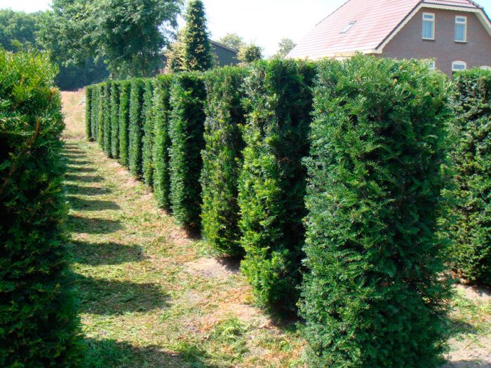 - Strait Hedge . Wysokość takiego żeńskiego krzewu wynosi około 5 metrów. Wąsko-kolumnowa płaska Korona o średnicy osiąga około 1,5 m. Podwójnie zakrzywione igły o ciemnozielonym kolorze. Igły są bujne.