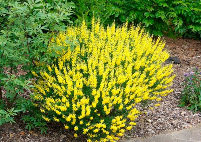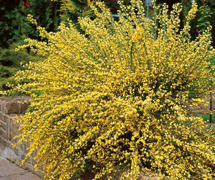 ten rodzaj wyróżnia się bezpretensjonalnością. Krzew osiąga wysokość około 150 cm, a zwisające cienkie gałęzie mają łukowaty kształt i tworzą bujną koronę. Zielonkawe wąskie płytki liściowe osiągają długość 20 mm i mają lancetowaty kształt. System korzeniowy jest powierzchowny. Krzew zdobi dużą liczbę kwiatów o bogatym żółtym kolorze, a ich aromat jest bardzo silny. Ten typ jest bardzo odporny na mróz. Najbardziej popularne są takie odmiany jak: