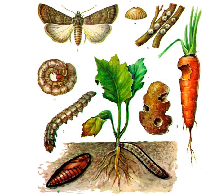 Gąsienice szufelki zimowej-uszkadzają nadziemne części krzewu, a także uszkadzają pędy i korzenie, gryząc je. Inne te gąsienice szkodzą pomidorom, pietruszce, cebuli, kalarepie, burakom, ogórkom i ziemniakom. Aby pozbyć się gąsienic, łóżko spryskuje się środkiem owadobójczym, postępując zgodnie z dołączonymi do niego instrukcjami, na przykład można użyć Cyjanoksu, Rewikurtu, nausznika, Anometryny lub Etafos.