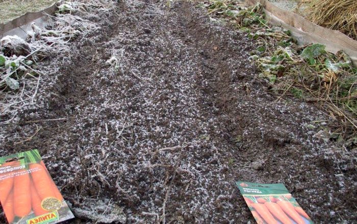 przy zimowym siewie marchwi ogrodnik będzie mógł uzyskać plon o pół miesiąca wcześniej niż wiosną. Jednak jesienią wysiewa się tylko wczesne dojrzałe odmiany, a takie rośliny okopowe nie nadają się do długotrwałego przechowywania. Siew odbywa się w ostatnich dniach października lub w pierwszych dniach listopada, a przygotowanie terenu pod tę uprawę powinno nastąpić 20 dni przed siewem. Po zakończeniu siewu powierzchnię łóżka należy wypełnić trzy centymetrową warstwą torfu. Wraz z nadejściem wiosny łóżko z góry musi być pokryte folią, jest usuwane natychmiast po pojawieniu się sadzonek. Należy zauważyć, że tylko lekkie gleby nadają się do zimowego siewu marchwi.