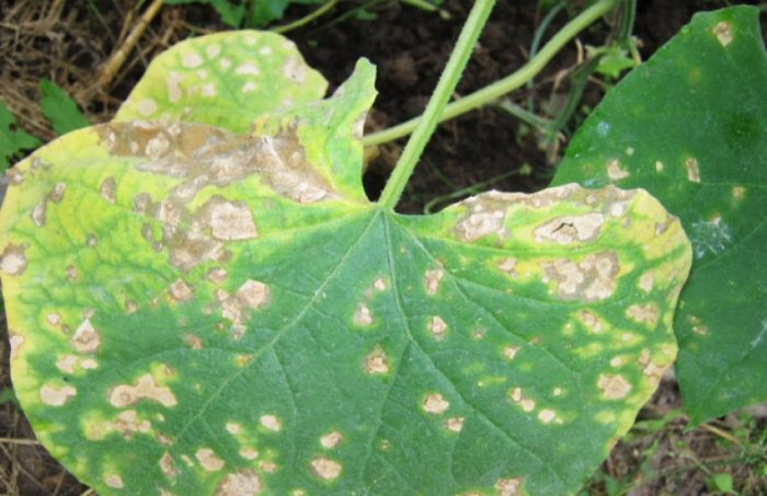 bakterioza jest chorobą zakaźną. Zainfekowana roślina ma oleiste plamki na liściach, z czasem stają się ciemniejsze. Tam, gdzie znajdują się takie plamy, występuje naruszenie integralności liści. Na powierzchni tykwy pojawiają się wrzody i wodniste plamki. Najbardziej aktywna choroba rozwija się w ciepłe i wilgotne dni. Chore cukinie należy spryskać roztworem mieszanki Bordeaux (1%).