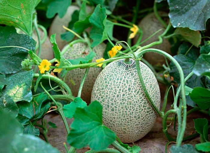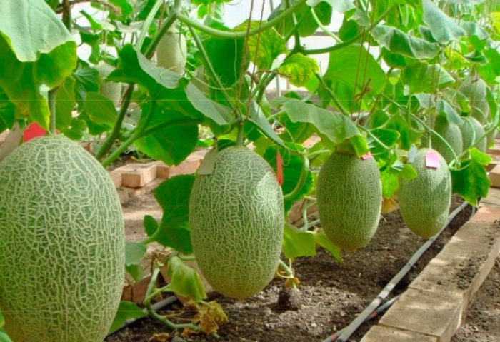 po uformowaniu jajników na krzakach wszystkie dodatkowe muszą zostać odcięte, pozostawiając tylko 2-6 sztuk nie więcej. Gdy dynie osiągną wielkość piłki tenisowej, każda z nich jest umieszczana w indywidualnej siatce, którą należy przywiązać do kraty, co usunie część obciążenia z batów melona. Aby melony w siatkach dojrzewały równomiernie, należy je okresowo odwracać. Jeśli owoc leży na powierzchni gleby, konieczne będzie umieszczenie pod nim kawałka nie gnijącego materiału, na przykład pokrycia dachowego lub folii.
