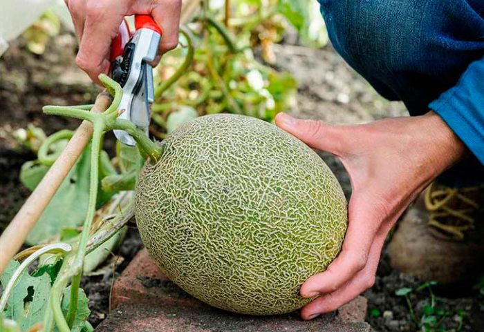przed przystąpieniem do zbioru melona należy upewnić się, że owoce są w pełni dojrzałe. Aby to zrobić, sprawdź kolor dyni, a także sprawdź siatkę pęknięć, która powinna znajdować się na powierzchni skórki. Dojrzałe owoce gotowe do zbioru można łatwo odłączyć od rzęs, na całej ich powierzchni znajduje się siatka, a dynia zmienia kolor na żółty. Należy jednak zauważyć, że takie melony nie są przeznaczone do długotrwałego przechowywania, z reguły mogą leżeć nie dłużej niż 8 tygodni. Owoce, które będą przechowywane przez długi czas, mają średnią siatkę, która pokrywa tylko ½ części dyni. Te same owoce, które są całkowicie żółte, a na całej ich powierzchni znajduje się siatka, należy natychmiast wykorzystać do jedzenia. Istnieją również takie odmiany, na powierzchni owoców, w których nie tworzy się siatka, ich stopień dojrzałości ocenia się na podstawie koloru.