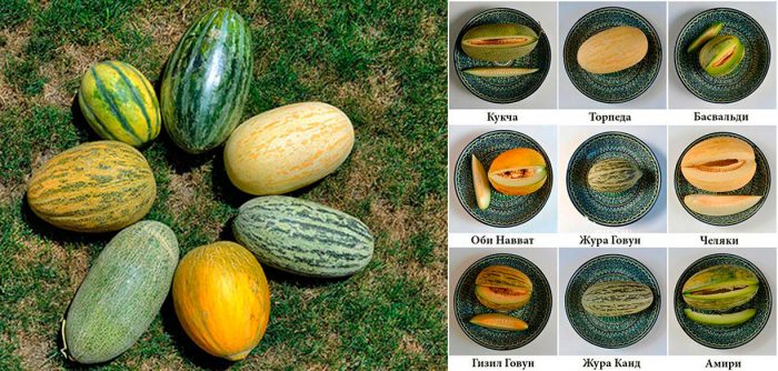 - Ameri . Takie melony Buchary mają owalny kształt, ich waga waha się od 5 do 10 kilogramów. Miąższ jest chrupiący i ma waniliowy zapach.