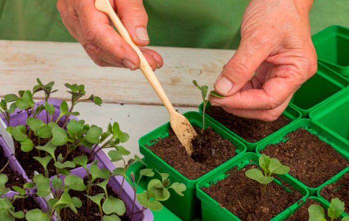 W połowie kwietnia wysiewaj nasiona na sadzonki. Aby to zrobić, użyj doniczek torfowych o średnicy dochodzącej do 10 centymetrów, w każdym z nich wysiewa się 2 lub 3 nasiona, jednocześnie pogłębiając je o 15-20 mm. do uprawy sadzonek stosuje się podłoże, które obejmuje piasek i torf (1: 9). 10 litrów powstałego podłoża należy połączyć z 1 łyżką.popiół drzewny.