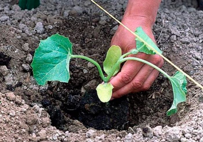 najpierw na stronie należy przygotować doły do sadzenia, odległość między nimi powinna wynosić co najmniej 0,6 m.sadzonki należy bardzo dobrze podlać przed sadzeniem, co pozwoli łatwo wyciągnąć roślinę z kubków. Szerokość między rzędami powinna wynosić około 0,7 m. podczas sadzenia roślin należy zwrócić uwagę na fakt, że ich szyjka korzenia unosi się nad powierzchnią gleby, w przeciwnym razie może na nią wpływać choroba grzybowa lub powstaje na niej zgnilizna. Dzięki tej metodzie lądowania okazuje się, że melon wydaje się być umieszczony na guzku. Aby zapobiec chorobom grzybiczym, po zasadzeniu sadzonek powierzchnia gleby na miejscu będzie musiała zostać pokryta warstwą piasku rzecznego. Przez pierwsze 2 dni sadzone rośliny będą potrzebowały ochrony przed bezpośrednimi promieniami słońca, w tym celu użyj mokrego papieru.