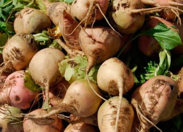 - Szwedzki . Ta odmiana stołowo-paszowa wyróżnia się wydajnością, czas trwania jej sezonu wegetacyjnego wynosi około 130 dni. Rośliny okopowe mają czerwonawy przypływ, w dolnej części są zaokrąglone i żółte, aw górnej są zielonkawo ― szare. Kolor miąższu jest żółty.