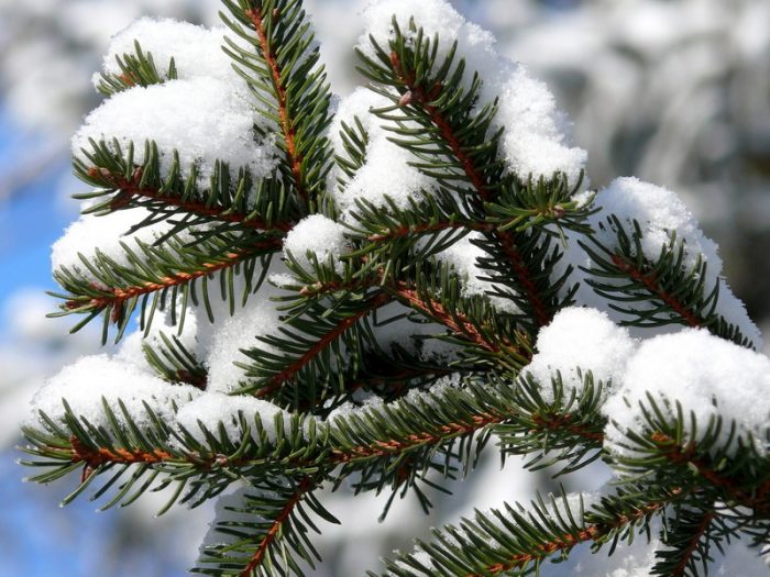zimą świerk czeka wiele niebezpieczeństw. Na przykład, gdy zimą występują obfite opady śniegu, a deszcz ze śniegiem przykleja się do choinki, w wyniku tego istnieje duże prawdopodobieństwo pęknięcia gałęzi szkieletowych, a także uszkodzenia cienkich gałęzi. Aby usunąć śnieg z rośliny, w żadnym wypadku nie trzeba Potrząsać choinką, ponieważ zimą gałęzie świerka są bardzo delikatne i mogą tworzyć się na nich pęknięcia. Gałęzie, do których można dotrzeć, należy uwolnić od śniegu, używając do tego miotły lub pędzla, podczas gdy konieczne jest przejście od czubka gałęzi do pnia. A pozostałe gałęzie, które znajdują się stosunkowo wysoko, należy oczyścić ze śniegu w inny sposób, w tym celu należy wziąć długą deskę, której koniec jest owinięty miękką szmatką. Ten kij musi podważać gałęzie na przemian, a następnie ostrożnie kołysać je w górę. Jeśli korona jest kolumnowa lub ma kulisty kształt, to jesienią, jeśli chcesz, nie można jej bardzo mocno pociągnąć, używając do tego Sznurka, podczas gdy gałęzie powinny przycisnąć się do pnia tak mocno, jak to możliwe, ale nie należy ich ściskać. Dzięki temu gałęzie będą chronione przed pękaniem. Jeśli zimą nastąpi gwałtowna zmiana temperatury w nocy i w ciągu dnia, wówczas na świerkowych łapach może powstać skorupa lodowa, w wyniku czego mogą się znacznie pochylić i pęknąć. W takim przypadku pod gałęziami należy umieścić podpory (używane do podtrzymywania gałęzi upraw owocujących latem), gdy na zewnątrz stanie się cieplej, stopiona skorupa sama się ześlizgnie.