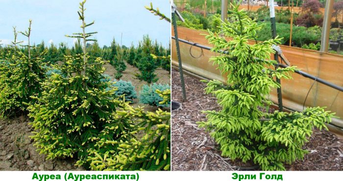 - Early Gold . Forma ta jest podobna do Aurei, jednak jej igły z czasem zabarwiają się na żółto-zielony kolor.