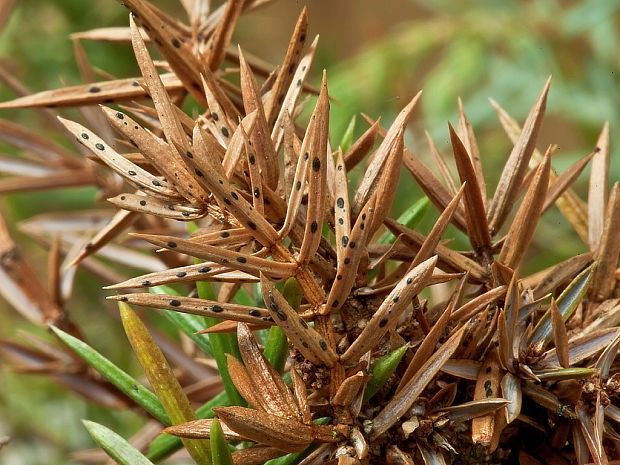 świerk pospolity - ta choroba objawia się wiosną. W dotkniętych okazach na zeszłorocznych pędach obserwuje się zmiany koloru igieł na brązowy, a także jego śmierć. Ale dotknięte igły nie kruszą się, ale pozostają na gałęziach do następnego okresu wiosennego. W tym czasie na niewłaściwej powierzchni igieł powstają apotecje grzyba, które wyglądają jak wypukłe błyszczące formacje czarnego koloru. Dotknięte okazy mają opóźnienie wzrostu, a niektóre z nich całkowicie umierają. Jak tylko zostaną zauważone pierwsze objawy choroby, należy natychmiast odciąć wszystkie zainfekowane gałęzie i spryskać drzewo roztworem leku grzybobójczego. Aby wyleczyć świerk, należy go przetworzyć 3 lub 4 razy.