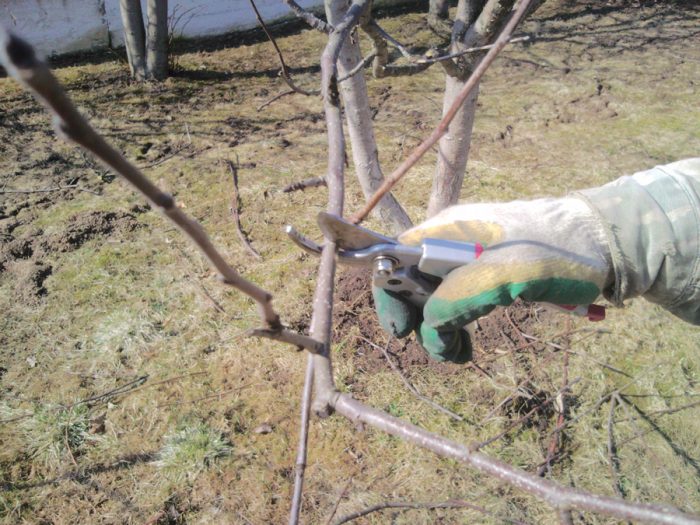 w procesie zbierania owoców część gałęzi zostaje zraniona lub zerwana w związku z tym, gdy opadanie liści zakończy się, roślina będzie wymagać przycinania sanitarnego. Podczas jego trwania konieczne jest odcięcie wszystkich wysuszonych, nieprawidłowo rosnących, rannych, konkurencyjnych i chorych łodyg i gałęzi. Wszystkie plastry, które są grubsze niż 0,7 cm, wymagają obróbki ogrodowej. Jeśli Na zewnątrz jest chłodniej niż minus 5 stopni, przycinanie należy odłożyć, ponieważ w takim mrozie drewno jest bardzo kruche, a podczas przycinania drzewo może zostać poważnie uszkodzone.