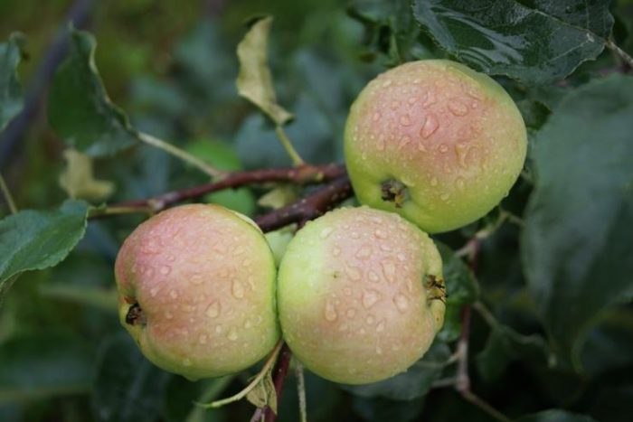 - Antonówka . Ta jesienna odmiana wyróżnia się mrozoodpornością i odpornością na strup, uzyskano ją przez krzyżowanie odmian szafranu Pepiny i antonovki zwykłej. Zaokrąglone kremowo-zielone jabłka z małym nakrapianym czerwonym rumieńcem ważą średnio 150-200 gramów. Soczysty pachnący miąższ ma średnio ziarnistą strukturę i słodko-kwaśny smak.