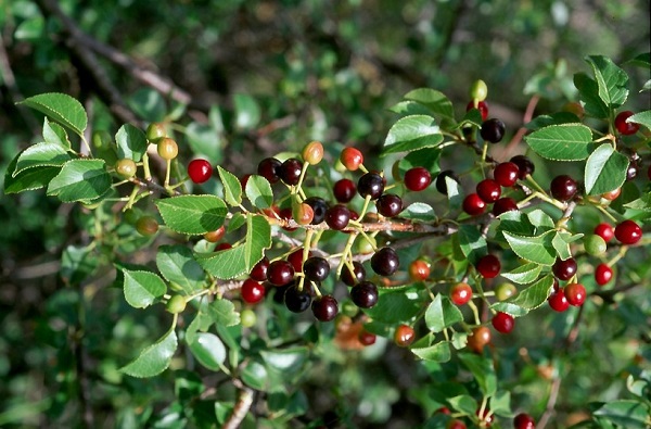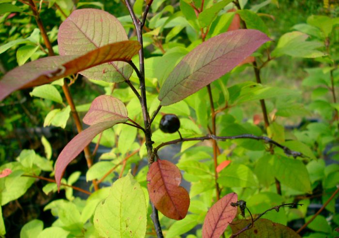 - Atropurpurea . Reprezentowany przez duży krzew lub drzewo, charakteryzujący się szybkim wzrostem i osiągający wysokość 15 metrów. Kolor kory jest czarny, liście są fioletowe. Jadalne ciemnoczerwone owoce mają cierpki smak.