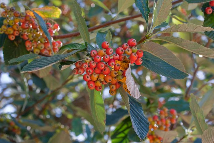 ogrodnicy uprawiają również takie odmiany jarzębiny, jak: mieszane, pośrednie lub Szwedzkie, olcholistne, Kene, Vilmorena, Amur i niektóre inne.