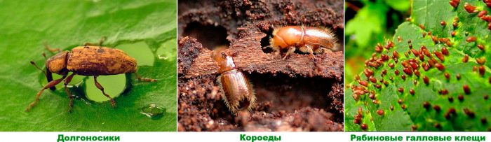 - kleszcze jarzębiny . Kiedy się pojawią, drzewo jest spryskiwane koloidalną siarką.