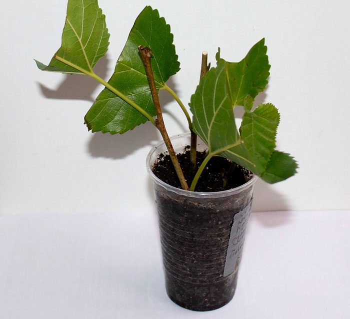jeśli drzewo jest korzeniowe, do jego rozmnażania można użyć zielonych sadzonek. Ale trudność tej metody polega na tym, że potrzebna jest specjalna instalacja, która może stworzyć małą zawiesinę wody w szklarni w postaci mgły. Zbiór sadzonek odbywa się w czerwcu–lipcu, w tym czasie roślina wykazuje aktywny wzrost morwy. Sadzonki są cięte z łodyg, które powinny osiągnąć długość od 15 do 20 centymetrów i mieć 2 lub 3 pąki. Ich sadzenie odbywa się w szklarni pod kątem 45 stopni. W bardzo luźnej glebie dolne cięcie cięcia należy wbić na głębokość 30 mm. Na sadzonce należy pozostawić tylko kilka górnych płyt liściowych, które są skracane o ½ części. Konieczne jest, aby szklarnia miała środowisko o wysokiej wilgotności. Młode pędy i potężny system korzeniowy w roślinach pojawią się jesienią, ale ich sadzenie na otwartej glebie powinno zostać opóźnione do następnej wiosny.