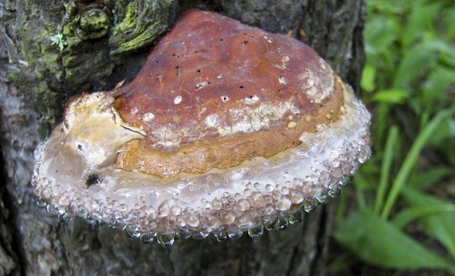 grzyb hubkowy osiada na drzewie i prowadzi do zniszczenia jego drewna. Jego zarodniki, dostając się do ran i pęknięć w korze, pasożytują na roślinie, co prowadzi do zniszczenia jej pnia. Po wykryciu takiego grzyba należy go wyciąć, chwytając część drewna i zniszczyć. Powstałą ranę należy potraktować roztworem siarczanu miedzi (5%). Następnie należy go pokryć mieszaniną, do przygotowania której należy połączyć wapno, glinę i obornik (1:1:2). Jeśli na powierzchni drzewa występują uszkodzenia mechaniczne, a guma wypływa z nich, konieczne jest oczyszczenie tych ran, a następnie dezynfekuje się je roztworem siarczanu miedzi (1%), a następnie traktuje się je roztworem składającym się z Nigrolu i popiołu drzewnego, który należy przesiać, te składniki są pobierane w stosunku 7:3.