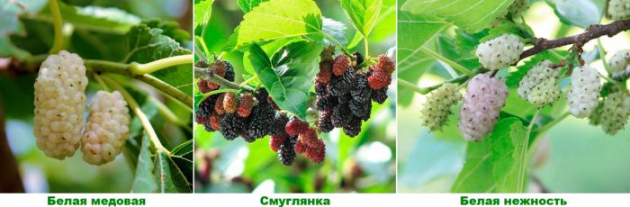 odmiany morwy czarnej nie nadają się do uprawy na przedmieściach. Jednak niektóre odmiany morwy białej od wielu lat są z powodzeniem uprawiane na średnich szerokościach geograficznych, a mianowicie: Vladimir, Royal, White Honey i Staromoskovskaya.