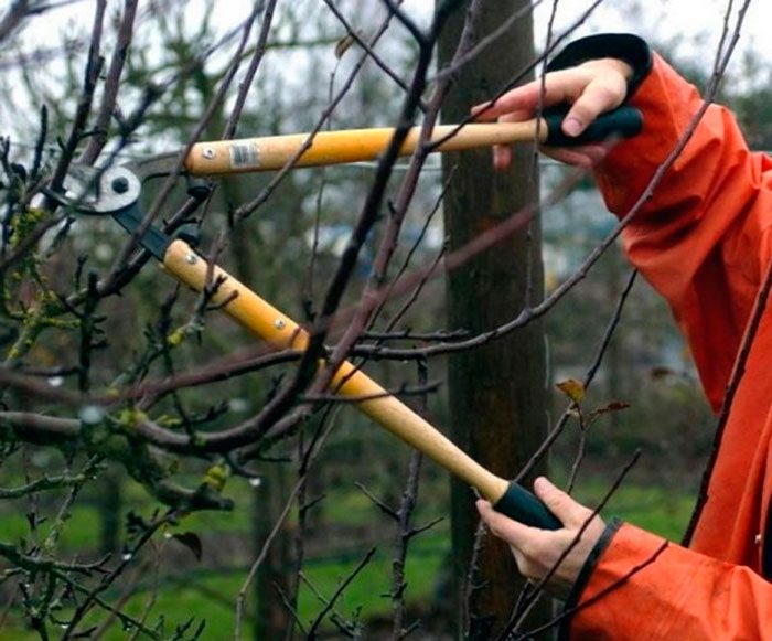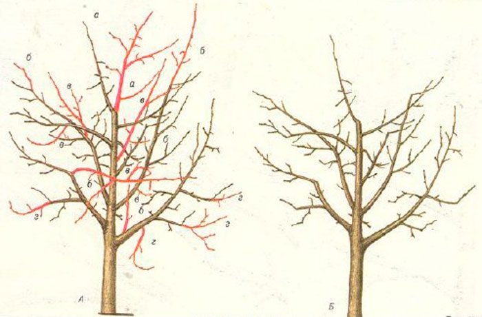 podczas gdy roślina jest młoda z pnia na wysokość 150 centymetrów, wszystkie gałęzie muszą zostać odcięte. W takim przypadku w dorosłej roślinie gałęzie nie opadną na powierzchnię witryny. Zapisany przewodnik można wyhodować do 5-6 metrów, jednocześnie odcinając wszystkie konkurencyjne łodygi. Jeśli nie ma ochoty angażować się w przycinanie formacyjne, po prostu pozwól koronie rosnąć w naturalnym porządku. Możesz utworzyć niezbyt wysokie drzewo, które jest wygodne w pielęgnacji. Aby to zrobić, pęd wierzchołkowy należy przyciąć na wysokości 1,35–1,7 m, a następnie powstaje szkielet, który powinien być podobny do karłowatej jabłoni. Takie drzewo powinno mieć od 8 do 10 gałęzi szkieletowych. Po uformowaniu rośliny konieczne będzie utrzymanie utworzonego kształtu, w tym celu cięcie i wyrywanie tych łodyg, które nie są potrzebne. Nie zaleca się przycinania opadających gałęzi, zamiast tego należy je podeprzeć.