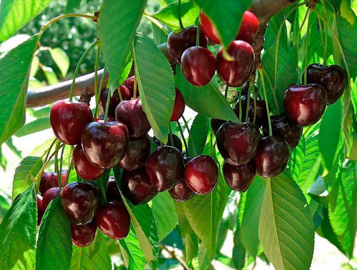 - Iput . Wczesna dojrzewająca odmiana samozapłodniona, charakteryzująca się wydajnością. Drzewo osiąga wysokość około 400 cm, jagody bordowe ważą około 5,5 gramów, a ich średnica wynosi 2,2 cm, soczysty miąższ jest bardzo słodki, brązowa kość dobrze się od niego oddziela.
