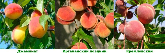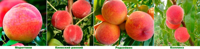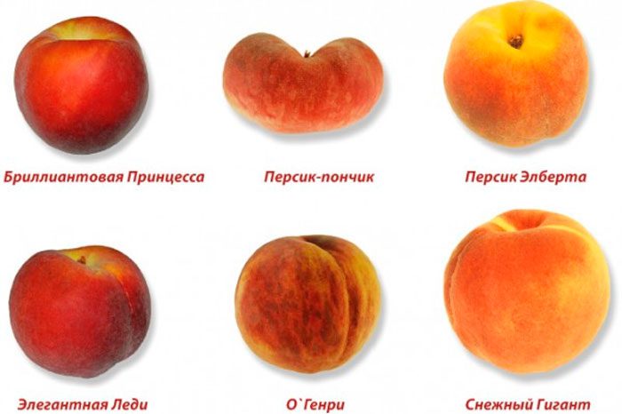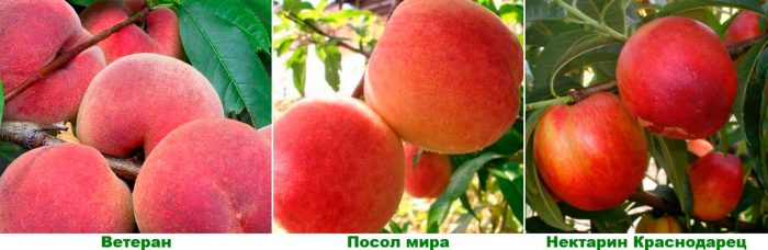 odmiany takie jak: biały łabędź, Złoty Jubileusz, Mistrz, Dakota, Toskański Kling, podwójny górski, nowy owoc, piękny, nektaryna ananasowa, salami itp.