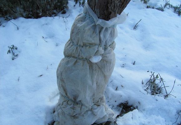 ta kultura jest ciepłolubna, więc na zimę należy ją koniecznie przykryć. W bezpośrednim sąsiedztwie pnia należy wbić 2 kołki, które osiągają wysokość łodygi rośliny. Następnie zarówno kołki, jak i trzon należy owinąć workiem cukru. Ten projekt można zastąpić kartonowym pudełkiem, który jest zainstalowany wokół lufy,owinięty folią. W przypadku, gdy zimy są dość łagodne w Twoim regionie, możesz to zrobić przez hilling łodygi rośliny do wysokości 0,5-0,6 m. Na zimę powierzchnię koła pnia należy przykryć warstwą ściółki (humusem lub torfem), której grubość powinna wynosić od 10 do 15 centymetrów.
