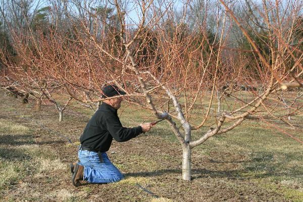 zasady przycinania drzew brzoskwiniowych różnią się w zależności od wieku. Z reguły Korona ma kształt miseczki. Aby to zrobić, po posadzeniu sadzonki w otwartym terenie, jej przewodnik należy przyciąć na wysokości 0,6–0,7 m.w gałęzi, która znajduje się nad wszystkimi innymi, kąt odejścia powinien być szeroki. Znajdź kolejne 2 przyrosty, które powinny znajdować się tuż poniżej i pod tym samym kątem. Wszystkie 3 gałęzie należy skrócić do 10 centymetrów na pąkach zewnętrznych. Pozostałe pędy, które są umieszczone na przewodniku i łodydze, należy odciąć natychmiast po kwitnieniu pąków.