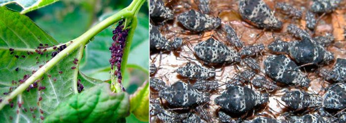 mszyce są w stanie osiedlić się na każdej kulturze, a jednocześnie żywią się sokiem roślinnym. Ten szkodnik ssący przyczynia się do osłabienia układu odpornościowego rośliny. Sadzy grzyby prawie zawsze osiadają na produktach życiowych tego owada, który pokrywa łodygi i płyty liściowe drzewa powłoką o ciemnym kolorze. Należy również wiedzieć, że mszyce są głównym wektorem nieuleczalnych chorób wirusowych. W związku z tym, gdy tylko takie owady zostaną znalezione na roślinie, natychmiast należy podjąć wszelkie niezbędne środki, aby je zniszczyć. Zielona brzoskwinia (szklarnia), czarna brzoskwinia i duża mszyca brzoskwiniowa mogą osiedlić się na tej kulturze. Jeśli mszyce są bardzo małe, można je usunąć z rośliny mechanicznie, a następnie dotknięte obszary należy dokładnie umyć roztworem mydła. W przypadku silnego uszkodzenia roślinę spryskuje się Aktellikiem, Karbofosem lub innym środkiem o podobnym działaniu. W razie potrzeby po 1,5-2 tygodniach opryskiwanie przeprowadza się ponownie. 15-20 dni przed zbiorem wszystkie zabiegi należy przerwać.