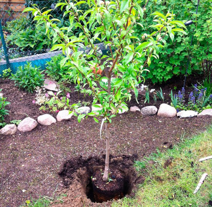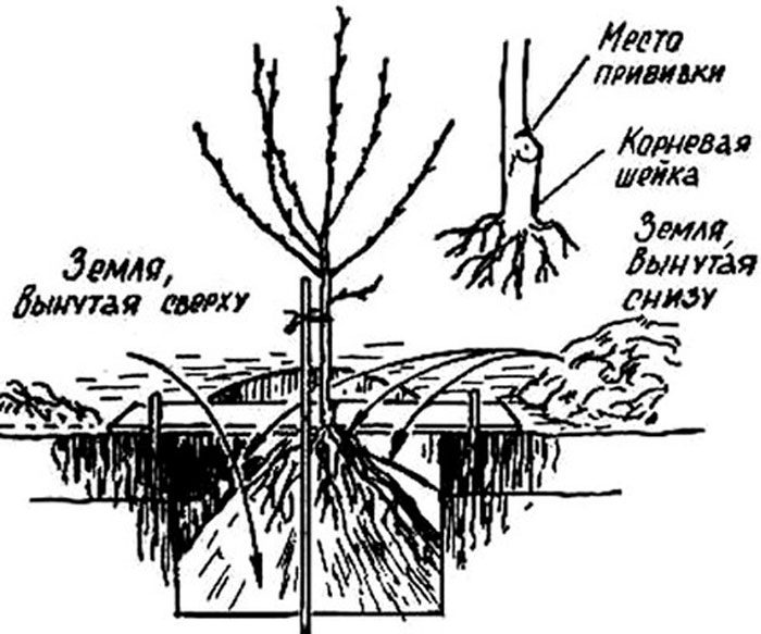 przygotowanie wykopu do lądowania powinno być zrobione tak wcześnie, jak to możliwe. Ponieważ im wcześniej przygotujesz wykop, tym lepsza będzie gleba. Przygotowanie wykopu do sadzenia wiosennego należy wykonać jesienią około 6 miesięcy przed dniem lądowania. Wielkość wykopu zależy bezpośrednio od wielkości systemu korzeniowego sadzonki, średnio jego głębokość i średnica wynoszą 0,5–0,7 m. na środku dna wykopu należy zainstalować mocny i wystarczająco długi kołek, powinien on wznosić się ponad powierzchnię gleby co najmniej 50 cm.