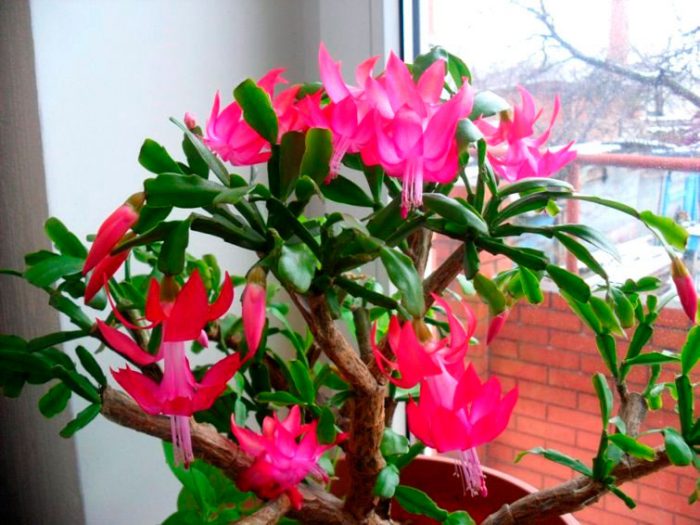 w naturze istnieją kaktusy, które boją się słońca, kochają wodę i nie mają kolców. Nazywa się taki Kaktus Schlumbergera (Schlumbergera), dekabrysta lub zygocactus. Roślina ta należy do rodzaju epifitycznych kaktusów południowoamerykańskich, które rosną na drzewiastych gałęziach lasów deszczowych. Zygocactus kwitnie, gdy w jego ojczyźnie obserwuje się tropikalne lato, a mianowicie w listopadzie lub grudniu, a kwitnienie kończy się w ostatnich styczniowych dniach. Na środkowe szerokości geograficzne dekabrysta został sprowadzony w 1816 roku przez kolekcjonera Allana Cunninghama.