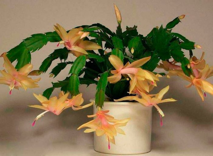 ta odmiana dekabrysta jest bardzo interesująca. Faktem jest, że ma żółte kwiatostany. Co więcej, ich odcień jest delikatny i przyjemny, wręcz słoneczny. Warto zauważyć, że w naturze dekabryści nie kwitną na Żółto. Ale hodowcy próbowali i wyhodowali ten gatunek. Musieli pracować przez długi czas, zadanie przed nimi nie było łatwe. Udało im się jednak stworzyć ciepły słoneczny dekabrysta.