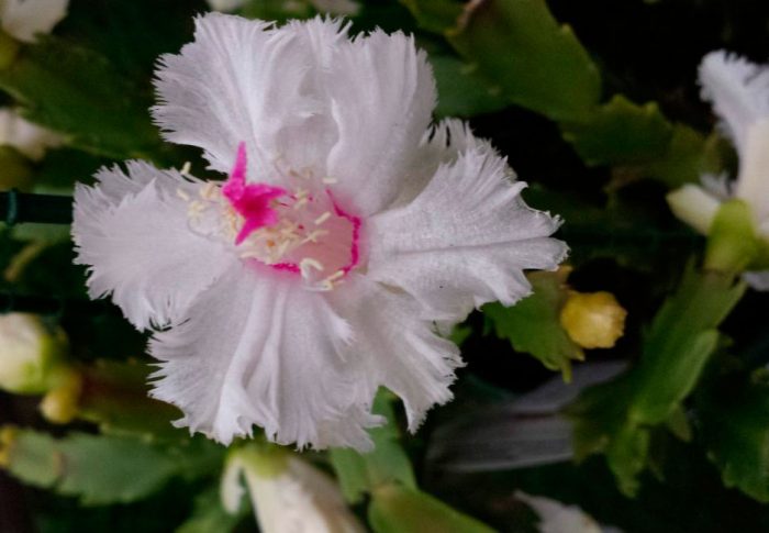 ten zagocactus jest frotte. Kwitnie na biało i jasnoróżowo. Pręciki rośliny mają żółty kolor. Dekabrysta tej odmiany przypomina trochę goździki podczas kwitnienia. Wygląda bardzo uroczyście. Taka roślina jest dobrze umieszczona w sali, w której jest dużo miejsca, a kwiat może pojawić się w całej okazałości.