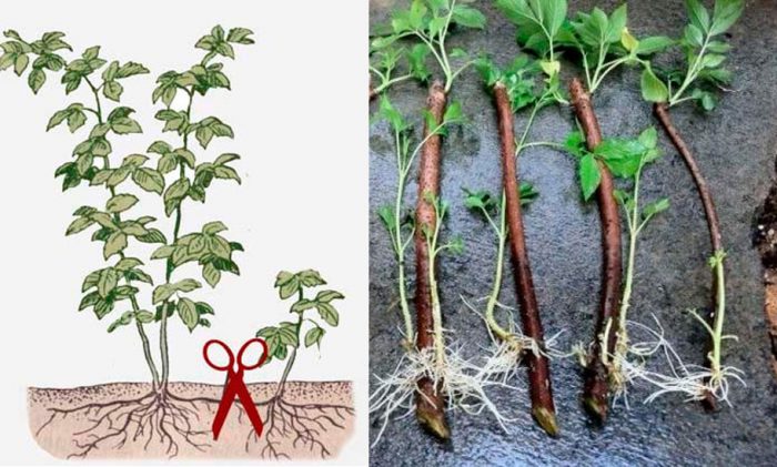 rozmnażanie malin jest bardzo proste, łatwe i szybkie. Sposób rozmnażania przez potomstwo został szczegółowo opisany powyżej. Również do rozmnażania tej rośliny stosuje się sadzonki. Cięcie sadzonek odbywa się w czerwcu w pochmurny dzień, w tym celu wybiera się dwuletnie lub trzyletnie potomstwo korzeni. Długość sadzonek powinna wynosić od 10 do 12 centymetrów i powinny mieć 2 lub 3 płytki liściowe. Sadzonki na 12 godzin zanurza się w produkcie stymulującym wzrost korzeni, a następnie sadzi się je w pojemniku o pojemności 0,5 litra, który należy wypełnić piaskiem zmieszanym z torfem. Pojemniki są usuwane pod folią, należy zauważyć, że wilgotność powietrza niezbędna do ukorzenienia sadzonek powinna wynosić około 90 procent, a temperatura wynosi od 22 do 25 stopni. Po 4 tygodniach sadzonki powinny zacząć rosnąć. Kiedy tak się stanie, są one ostrożnie przenoszone wraz z bryłą ziemi do bardziej przestronnego pojemnika: jego wysokość powinna wynosić co najmniej 14 centymetrów, a objętość ― 1,5 litra.po zakorzenieniu się sadzonek należy je zacząć hartować, w tym celu zabierając je na chwilę na świeże powietrze. Utwardzone sadzonki sadzi się na łóżku szkoleniowym, będą potrzebować cieniowania przed palącym światłem słonecznym, które jest usuwane tylko wtedy, gdy rośliny zapuszczą korzenie i zaczną rosnąć. Jesienią są przesadzane do stałego miejsca. Sadzonki zebrane jesienią muszą być traktowane środkiem grzybobójczym, co ochroni je przed chorobami grzybiczymi. Następnie sadzonki należy wypełnić torfem i przechowywać w piwnicy, piwnicy lub innym chłodnym miejscu. Tak więc przed nadejściem okresu wiosennego sadzonki zostaną rozwarstwione, ważne jest, aby nie zapomnieć o systematycznym nawilżaniu torfu. Wiosną sadzonki są natychmiast sadzone na łóżku, podczas gdy jego powierzchnia musi być pokryta warstwą ściółki.