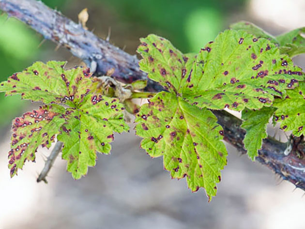 choroba grzybicza antraknoza aktywnie rozwija się w deszczową deszczową pogodę latem. W dotkniętym krzaku na powierzchni płytek liściowych pojawiają się szare plamki z czerwonymi obrzeżami, owoce wysychają, a końce pędów umierają. Aby zapobiec sadzeniu, należy wybrać odmiany odporne na tę chorobę, a także wyciąć i spalić wszystkie zainfekowane części malin. Dotknięty okaz należy również potraktować roztworem nitrafenu.