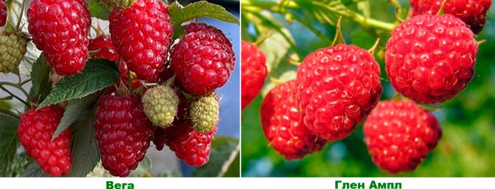 - Vega . Odmiana odporna na mróz jest odporna na choroby grzybowe. Wysokość krzewu wynosi około 250 cm, rośnie wiele małych pędów. Kształt owoców malin jest tępokoniczny, waży około 4 gramów, smak jest słodko-kwaśny.
