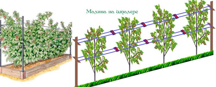natychmiast po stopieniu całego śniegu na stronie będzie musiał zostać uwolniony z liści, które spadły w zeszłym roku, ponieważ mogą zawierać patogeny lub szkodniki, które ukrywały się tam przed zimowymi mrozami. Ten krzew potrzebuje wsparcia, dlatego wiosną należy wykonać podwiązkę malinową do kraty. Jeśli roślina zostanie przywiązana do kraty, w wyniku tego będzie równomiernie oświetlona promieniami słonecznymi, nastąpi przyspieszenie dojrzewania i wzrostu młodych pędów podstawowych, a także takie krzewy są stosunkowo łatwiejsze w pielęgnacji. Jeśli zdecydujesz się zrobić kratę, będziesz musiał wykopać potężne kolumny na końcu i na początku każdego rzędu po obu stronach, osiągając wysokość 150 centymetrów. Między tymi słupami należy rozciągnąć drut w 2 rzędach: dolny rząd powinien znajdować się na wysokości 0,6–0,7 m od powierzchni terenu, a górna na wysokości 1,2 m. Aby uniknąć ugięcia drutu, należy co 5 m w ziemię wbić drewniany kol. Umieścić łodygi krzewów na drucie веерообразно, a następnie zabezpieczyć je, подвязав sznurkiem. Po kilku latach konieczne jest rozciągnięcie dodatkowych rzędów drutu między filarami: pierwszy znajduje się na wysokości 0,3 m od powierzchni działki, a drugi na wysokości 1,5 m.