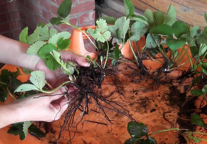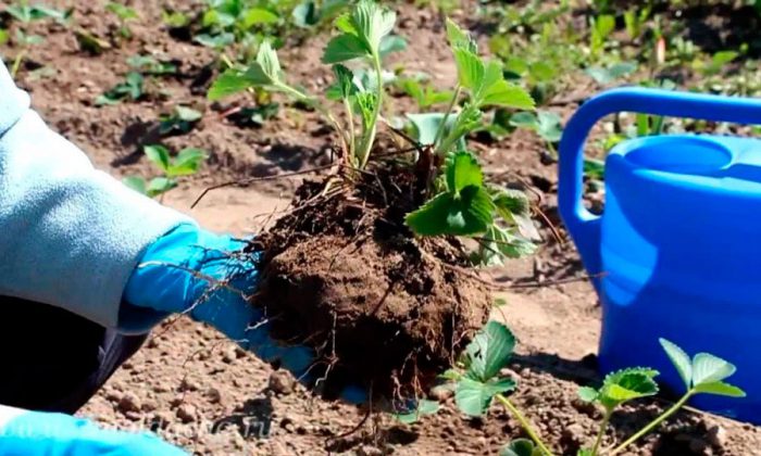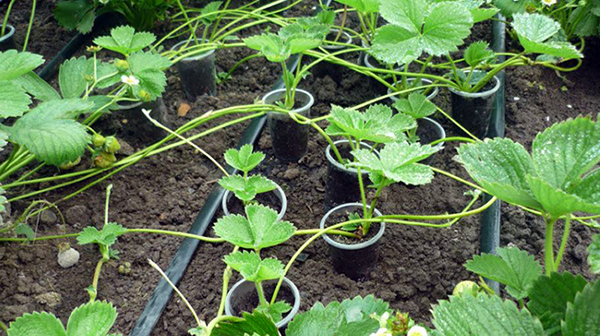 kiedy truskawki przynoszą owoce, zaleca się wybranie najbardziej odpowiednich do rozmnażania i rozwiniętych krzewów, które powinny mieć 1 lub 2 lata, zauważając, że ich owoce powinny być stosunkowo duże. Wybierz największe wąsy, które powinny odchodzić od wybranych krzewów, posadź je w doniczce, a następnie pozostaną przypięte. Do rozmnażania wybiera się tylko największe rozety, a wąsy drugiego i trzeciego rzędu, a także pozostałe pędy pełzające, które łączą wąsy z krzakiem, należy przyciąć. W lipcu na wybranych wąsach powinno wyrosnąć od 4 do 6 blaszek liściowych, kiedy to nastąpi, rozety są oddzielane od rośliny macierzystej i przesadzane do stałego miejsca wraz z kawałkiem ziemi. Przeszczepione krzewy wymagają podlewania.