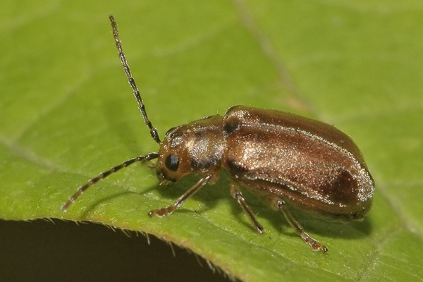 Zjadacz liści kaliny to mały (długość około 0,6 cm) robak o jasnobrązowym kolorze. Jego larwy wyłaniają się z ziemi w pierwsze majowe dni. Jedzą płytki liściowe rośliny, podczas gdy pozostają z nich tylko żyły. W przypadku, gdy jest dużo larw, liście mogą nie wystarczyć na wszystkich, wtedy zaczynają jeść młode pędy. Larwy te uszkadzają również jagody kaliny. Samice takiego owada gryzą w górnej części pędu wgłębienia, w które składają jaja. Z powodu takich szkodników ogrodnik może stracić plony, a także powoduje zmniejszenie odporności na mróz samej rośliny. Sprawdź górne części pędów i odetnij te, w których znajdują się składanie jaj. Następnie Kalinę należy spryskać Fufanonem lub Karbofosem.