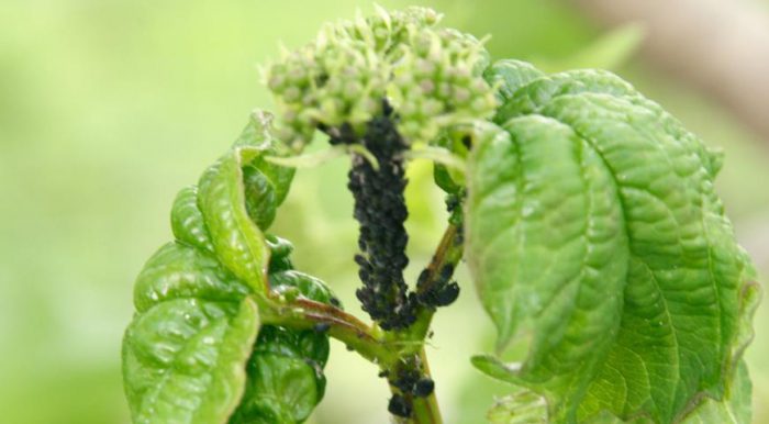 Czarna mszyca liściowa, jak w zasadzie każda mszyca, jest głównym wektorem chorób, których nie można wyleczyć. W związku z tym, gdy taki owad zostanie znaleziony, należy podjąć wszelkie niezbędne środki, aby go zniszczyć. Mszyce żywią się sokiem roślinnym, wysysając go z płyt liściowych, powodując ich zwijanie. Liście zmieniają kolor na brązowy, następuje jego deformacja i suszenie, a rozwój pędów zatrzymuje się. Końce pędów, na których znajduje się Kolonia mszyc, należy odciąć i zniszczyć. Spryskaj krzew Karbofosem lub Fufanonem.